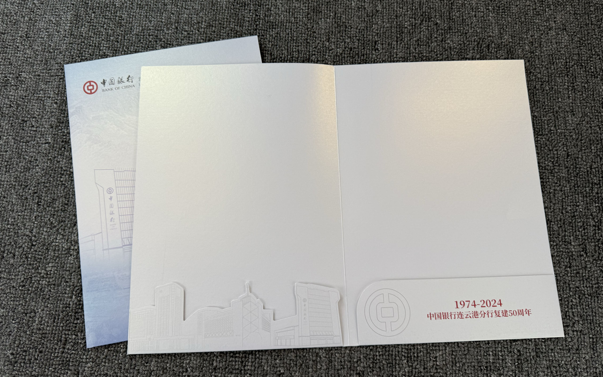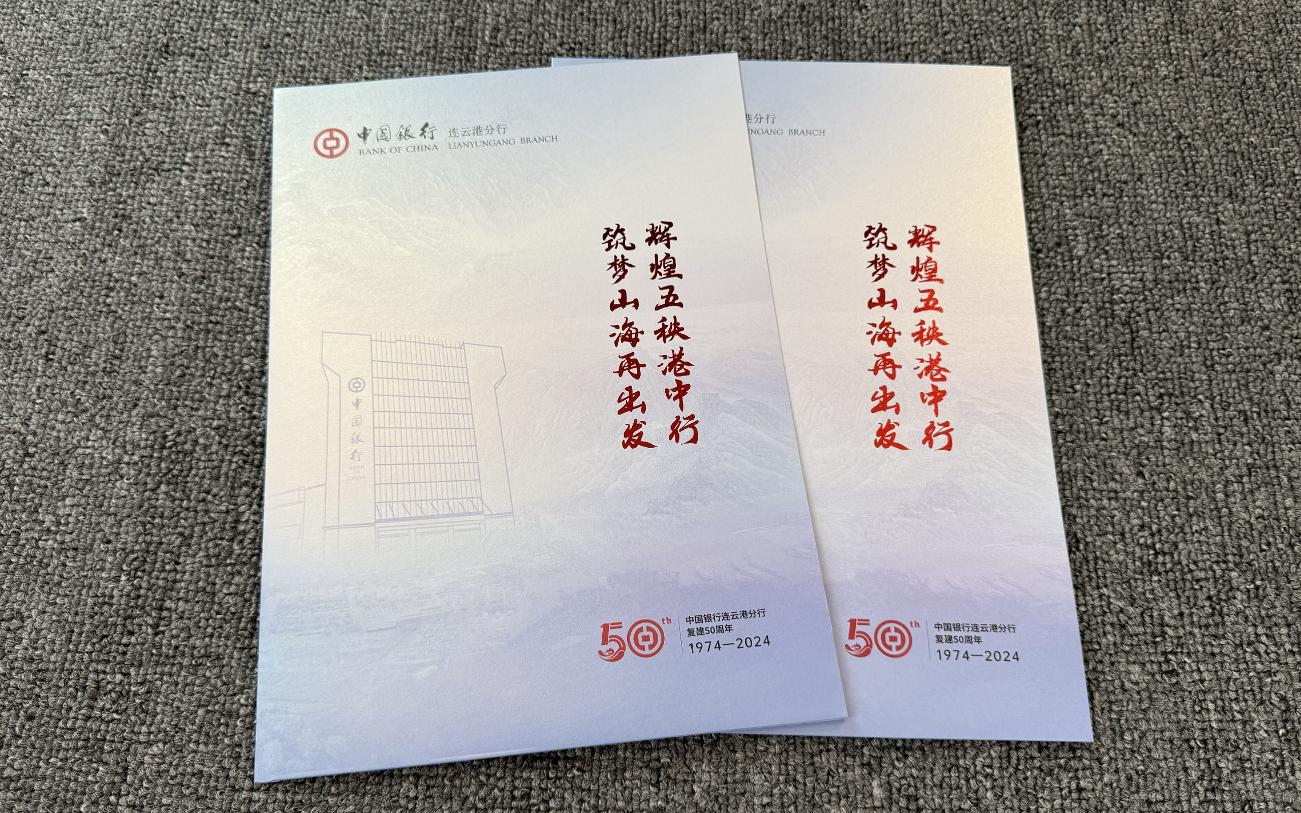 泰州印刷公司专业承接银行封套定制,以海德堡四色精印技术还原精准色彩,搭配烫红金工艺提升质感,选用300g快干珠光纸,为中国银行连云港分行打造50周年纪念封套。支持各类机构高端印刷定制,按需设计工艺方案,品质可鉴!